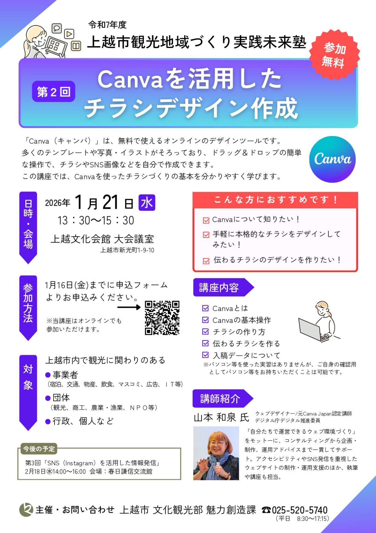 「Canvaを活用したチラシデザイン作成」を学ぶ講座(上越市観光地域づくり実践未来塾)のご案内