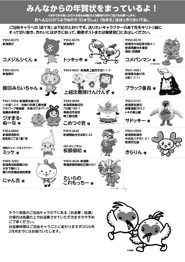 新潟県のご当地キャラクターに年賀状を送ろう!おへんじがとどくかも!?